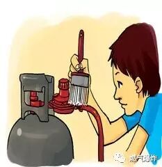一查:用气前先查看胶管是否脱落、龟裂,空气中是否有液化气臭味;如有,须中止用气操作并查找原因直至整改到位; 二开:先打开钢瓶阀门通气,再打开灶前开关用气; 三关:用...